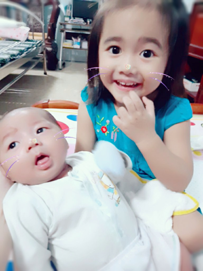 “Đây chị gần 2 tuổi con em gần 3 tháng. Sau màn ôm hôn thắm thiết, nó uống sữa xong nhét ống mút vào mồm con em không được thì nó ném luôn vào mặt cùng mấy cái vỏ kẹo”, A.H đau đầu với 2 đứa con của mình