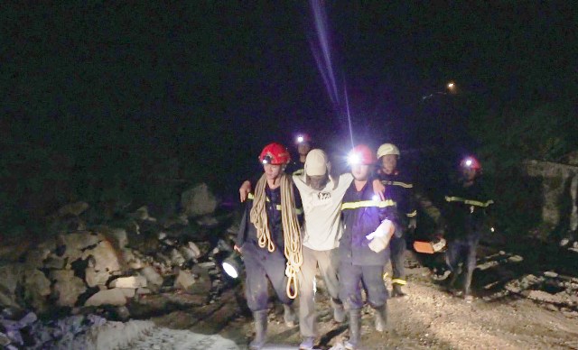Lực lượng chức năng đưa nạn nhân ra ngoài an toàn (ảnh PCCC Đà Nẵng)