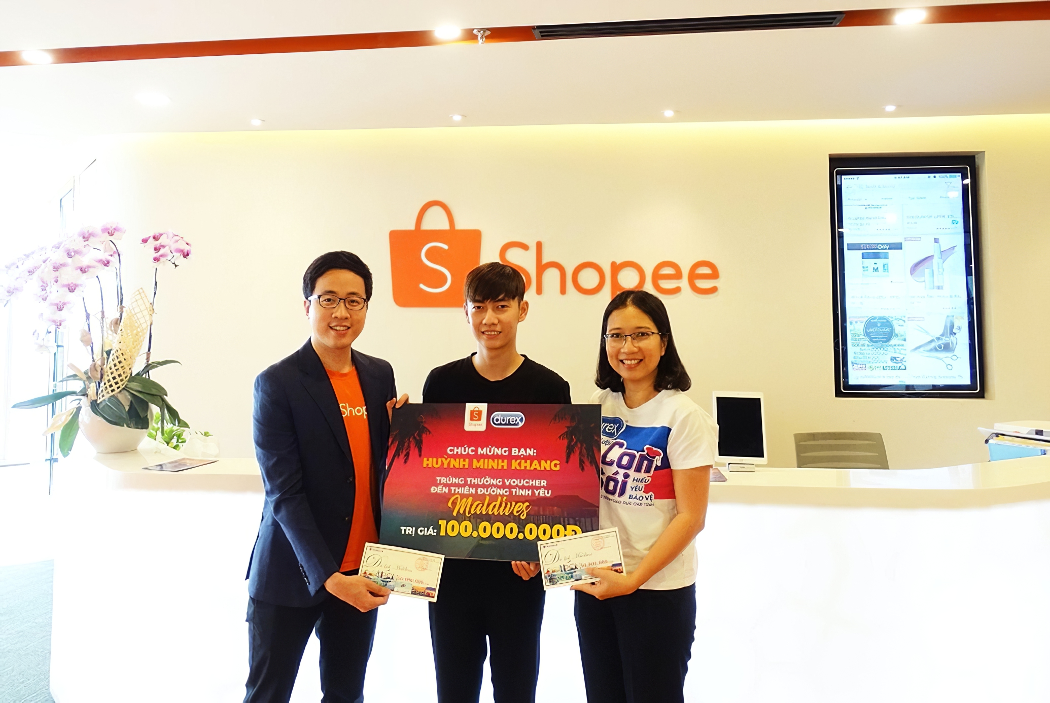 Vào ngày 09/03/2020, đại diện trang TMĐT Shopee và nhãn hàng Durex tổ chức buổi trao thưởng cho khách hàng may mắn trúng giải đặc biệt trong chương trình “Cùng Durex x Shopee đến thiên đường tình yêu Maldives”, là voucher cho chuyến du lịch dành cho 2 người với tổng giá trị lên đến 100 triệu đồng.