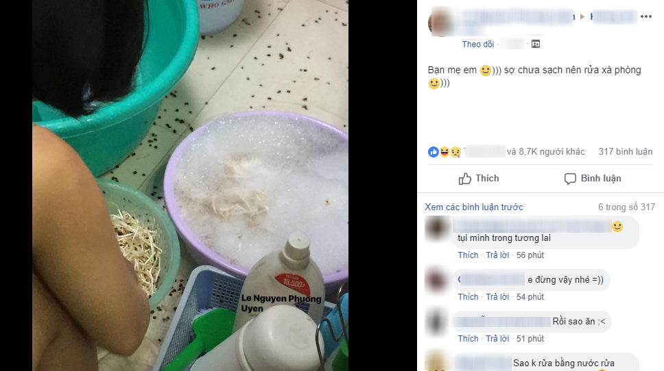 Dù chưa rõ bạn mẹ chủ thớt dùng gì nhưng khá nhiều dân tình vẫn đang ngạc nhiên trước hành động rửa rau bằng xà phòng.