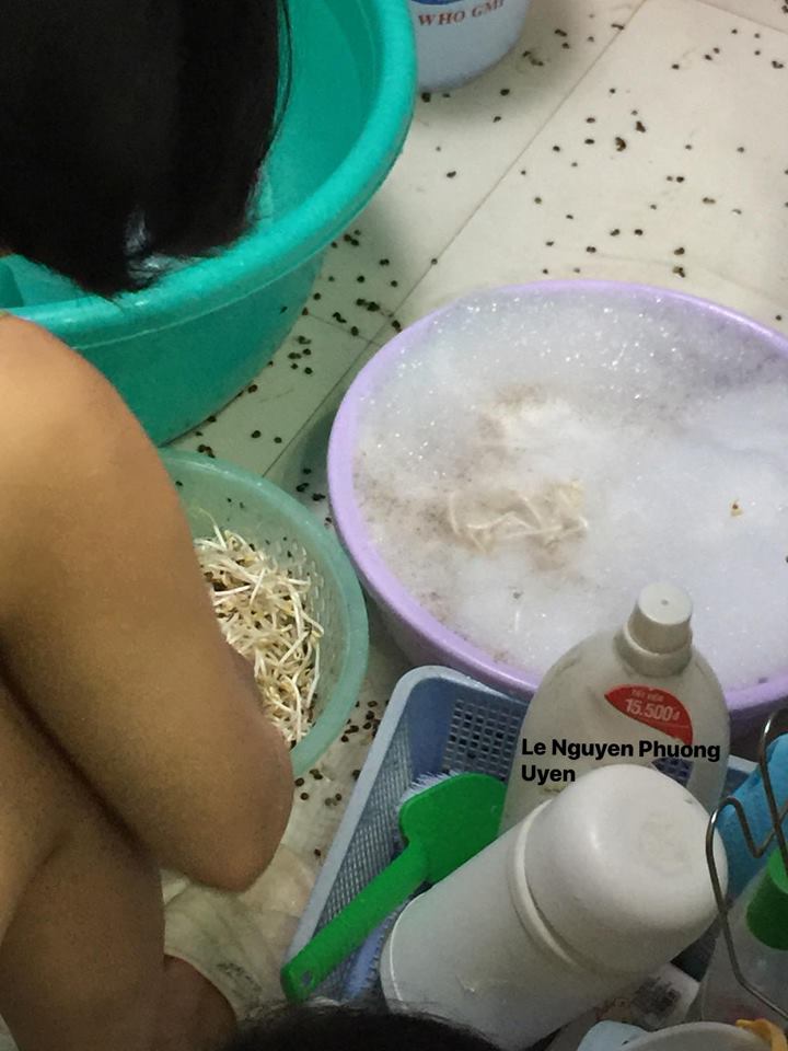 Theo hình ảnh tài khoản L.N.P.U ghi lại, một cô gái đã dùng xà phòng rửa giá đỗ. Trong chậu nước, ngoài giá đỗ còn xuất hiện cơ man bọt xà phòng.