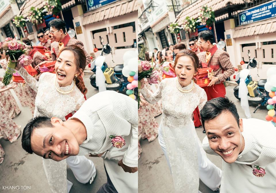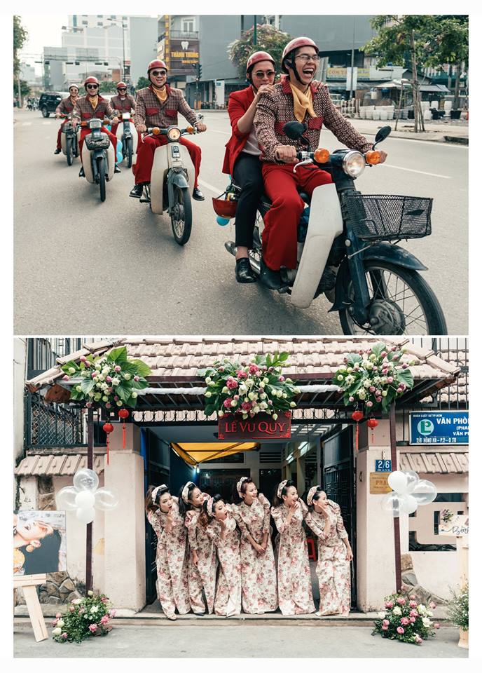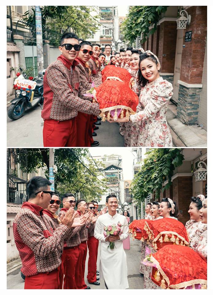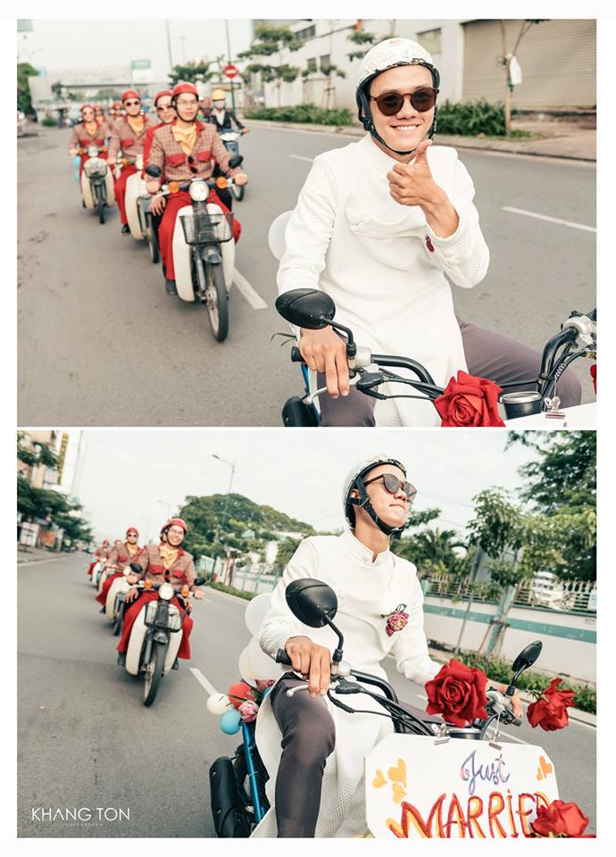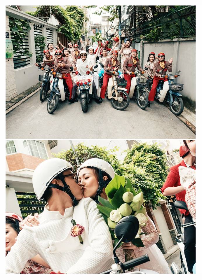 Được biết, đây là màn ăn hỏi và rước dâu của cặp đôi Trần Hoàng Yến (28 tuổi) và Phan Thái Bình (27 tuổi). Cả hai đều là diễn viên múa của Nhà hát Giao hưởng Nhạc vũ kịch TP.HCM. Đám rước được huy động tổng cộng 7 chiếc xe cub cùng dàn bưng quả đều là dân múa. Vì vậy, ý tưởng cho cho màn nhảy retro này đã ra đời như vậy.