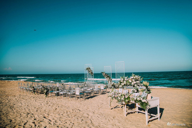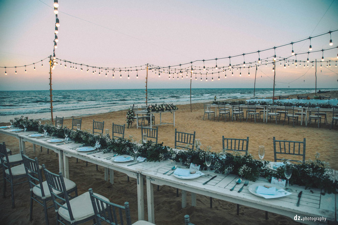 Không gian tiệc cưới lãng mạn bên bãi biển của Tyna và Trúc. Ảnh: Dz.photography, Hands & Heart