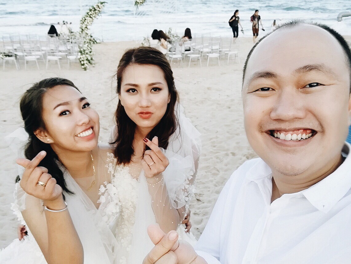 Chung vui với 2 cô bạn, không chỉ có bạn bè, người thân mà còn có sự xuất hiện của anh Huỳnh Minh Thảo - Giám đốc truyền thông và vận động xã hội của Trung tâm ICS (Tổ chức bảo vệ và thúc đẩy quyền LGBTIQ tại Việt Nam) - với tư cách là chủ hôn của buổi lễ. Đây không phải là lần đầu tiên anh Thảo được mời làm chủ hôn cho một cặp đồng tính, nhưng hôn lễ của Tyna và Trúc để lại trong anh một cảm xúc rất đặc biệt.