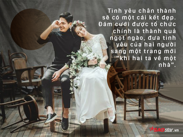 Là khi tình cảm đủ chín muồi, xác định được tương lai của nhau nhất định không thể thiếu đối phương thì đám cưới sẽ diễn ra như một điều tất yếu. Đám cưới được tổ chức chính là thành quả ngọt ngào, đưa tình yêu của hai người sang một trang mới ‘khi hai ta về một nhà’. Cuối cùng, sau bao ngày tháng trôi qua, tình yêu chân thành đã có một cái kết đẹp. Đó là khi ta không còn phải ngủ một mình trên chiếc giường rộng lớn, không cần phải có những cuộc điện thoại xa xôi hay những bức hình chụp vội để gửi cho người còn lại biết mình đang như thế nào rồi. Là khái niệm về gia đình, về hôn nhân, về con cái dần dần rõ ràng hơn bao giờ hết khi giờ đây chúng ta sắp được chính thức cùng nhau sống cùng dưới một mái nhà, nhìn về cùng một tương lai, hạnh phúc một niềm vui khôn xiết khó tả.