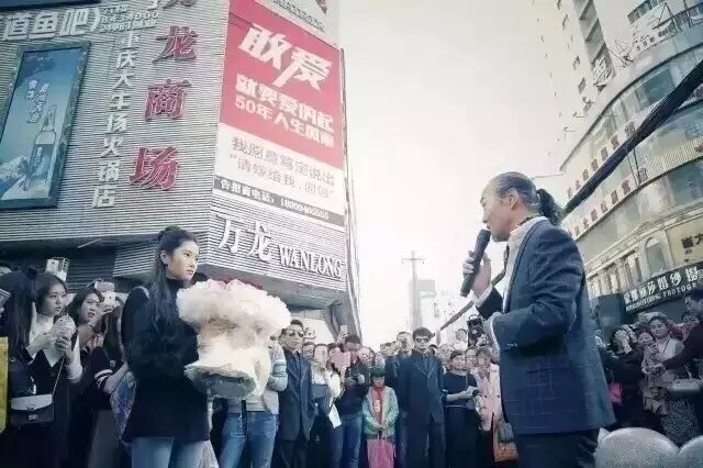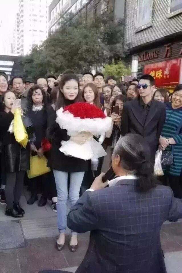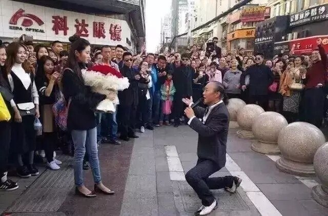 Ngay từ lúc xuất hiện và ”set up” màn cầu hôn trên một con phố nhộn nhịp tại Đài Loan , quý ông này đã thu hút sự chú ý của đám đông, bởi vẻ ngoài lịch thiệp, lãng tử. Cứ tưởng tượng đối tượng của quý ông là một… quý bà nào đó luống tuổi, nhưng khi nữ chính xuất hiện, người ta đã Ồ lên kinh ngạc. Bởi cô ấy quá trẻ trung và xinh đẹp.