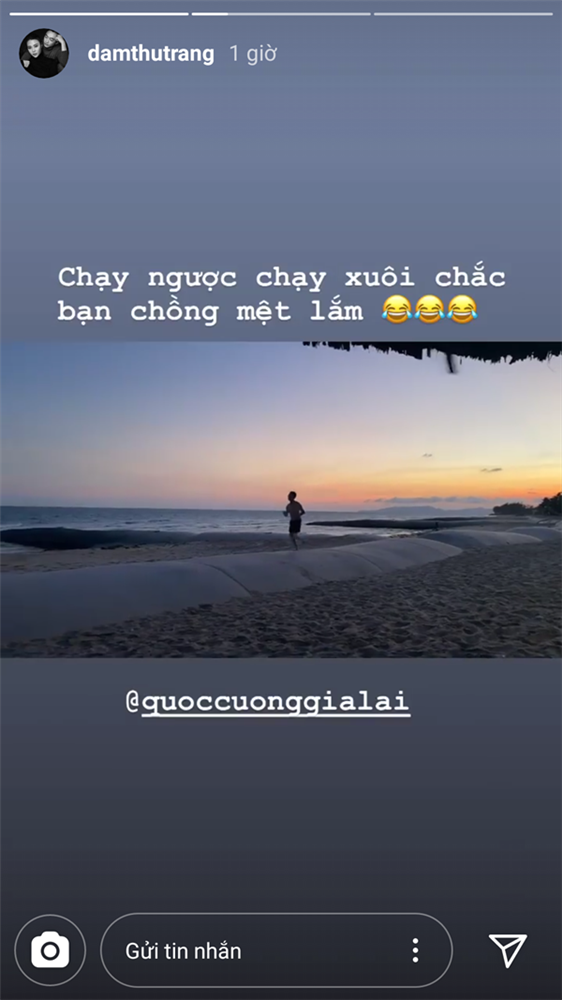 Những bức hình Cường Đô La chạy thể dục trên bờ biển sau đó vì mệt mỏi mà nằm sóng soài trên bãi cát đã khiến cho cộng đồng mạng không nhịn nổi cười và thốt ra lời khen “Thu Trang chăm chồng mát tay thật”.