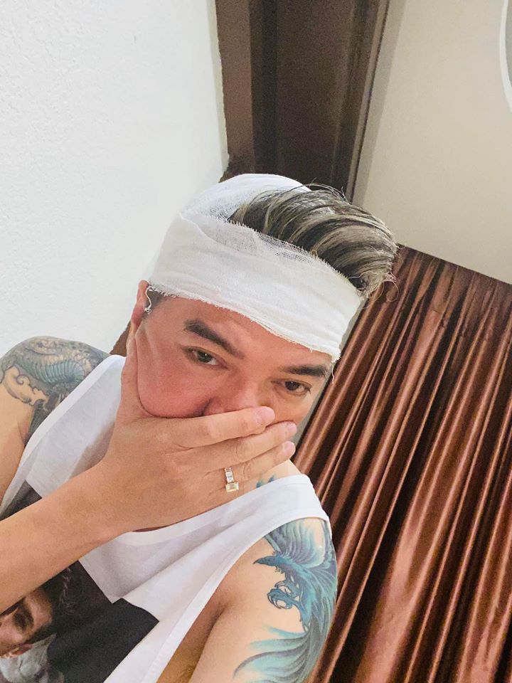 Tối 8/1, fanpage Đàm Vĩnh Hưng đăng tải những hình ảnh anh đang băng bó vết thương ở đầu cùng dòng chia sẻ “Sinh nghề tử nghiệp là có thật” khiến nhiều người hâm mộ lo lắng. Theo đó, nam ca sĩ không may va vào đạo cụ trên sân khấu khiến đầu bị thương và phải vào viện.