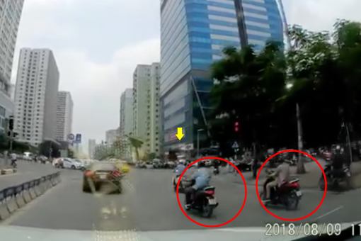 Hình ảnh ghi lại được cho thấy, một cô gái điều khiển xe máy với chiếc túi xách treo ở móc võng xe đang dừng chờ đèn đỏ thì bất ngờ bị một người đàn ông đi phía sau cố tình đâm vào đuôi xe. Cùng lúc này xuất hiện một đối tượng khác áp sát “con mồi”.