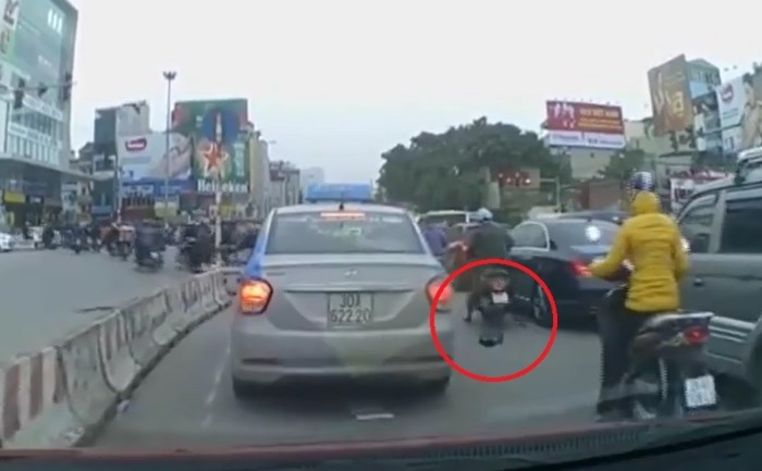 Sự việc xảy ra vào 11h50 phút ở ngã tư Lê Văn Lương - Hoàng Đạo Thuý (Hà Nội).