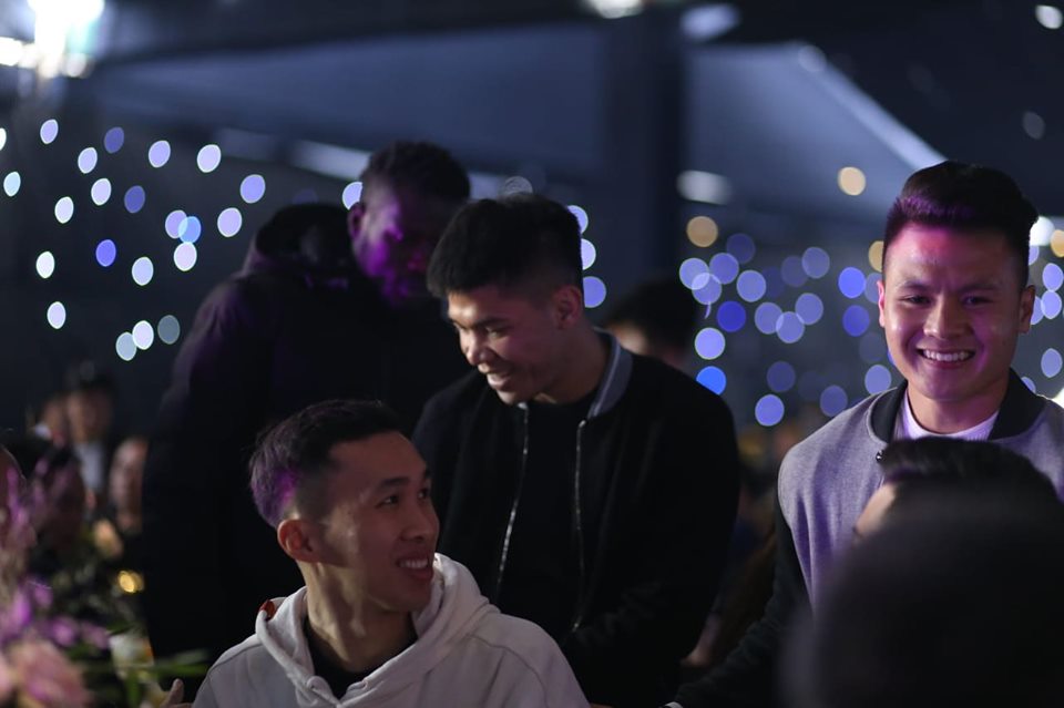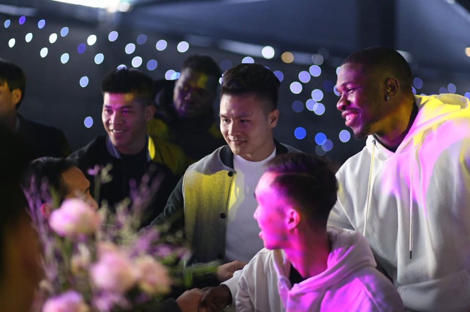 Quang Hải rạng rỡ nói chuyện cùng bạn bè.