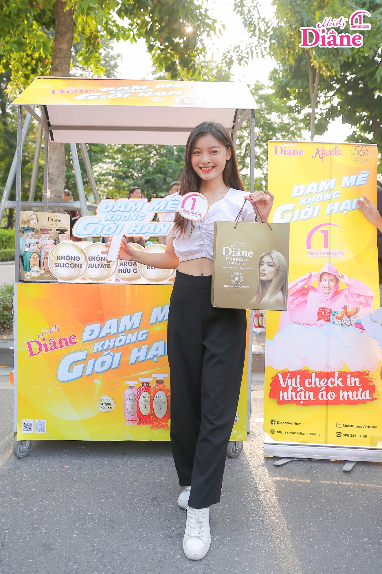 Đi cùng với Nam Phương là Phan Hà Vy - Á khôi Nữ sinh thanh lịch Thủ đô 2019. Cô gái xinh đẹp nổi bật giữa phố đông người với áo phông cam, chân váy xòe trẻ trung. Hà Vy cũng chia sẻ ngay khi nhận được thông tin sự kiện, cô rất mong đợi được tham gia và choáng ngợp trước quy mô, tinh thần sôi nổi của bữa tiệc với màu cam chủ đạo.
