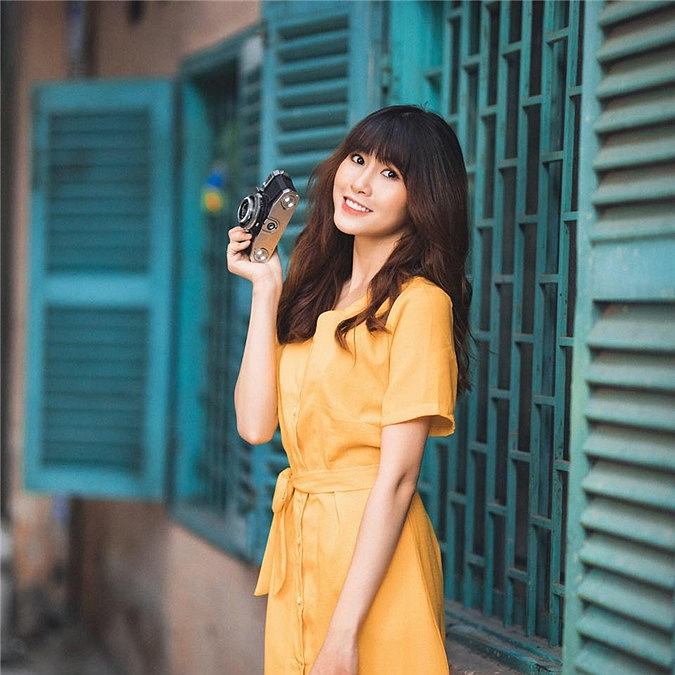 Kim Yến sở hữu gương mặt ưa nhìn với đôi mắt to, sống mũi cao thẳng cùng nụ cười tươi tắn.