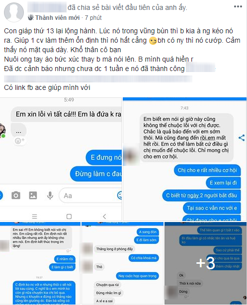 Theo lời kể của chủ nhân bài viết, hai cô gái trong câu chuyện trên rất thân thiết. Một cô hết lòng sống vì bạn bè. Khi thấy người kia bị cuốn vào “vũng bùn” thì kéo bạn ra. Điều đáng nói, cô còn giúp người này có công việc ổn định nhưng bị “hất cẳng” ngay sau đó. Đến bây giờ, cô bị người mình coi là chị em thân thiết cướp cả người yêu. Chủ nhân bài viết phẫn nộ trước thái độ, cách sống của người kia với bạn mình nên đã đăng đàn “bóc phốt”.