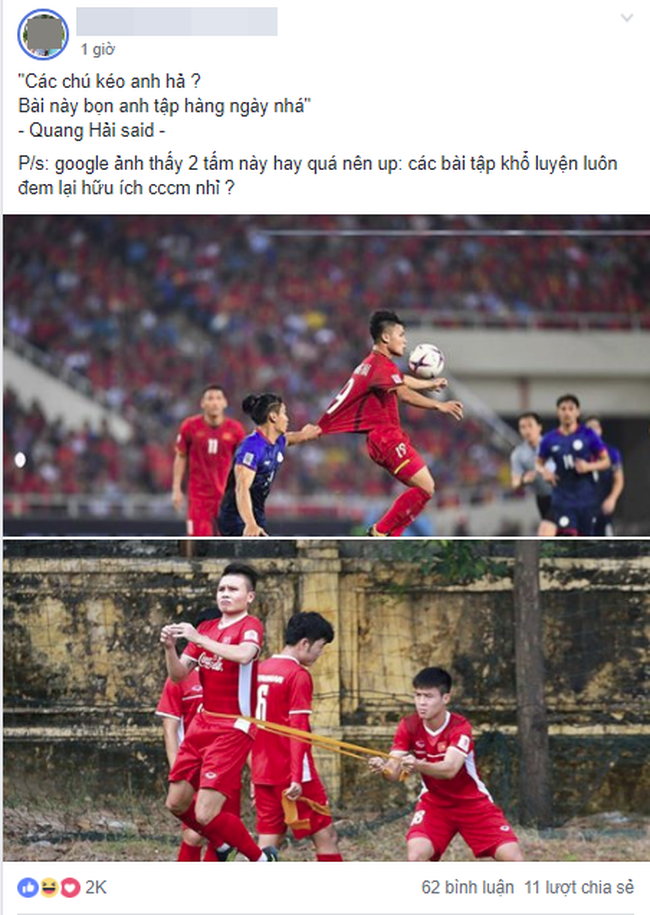Một người khác hài hước nói: “Kể cả anh có kéo nữa thì Hải nhà ta vẫn sút tung lưới nhà anh nhé. Vì hàng ngày Hải bị kéo nhiều nên quen rồi“.