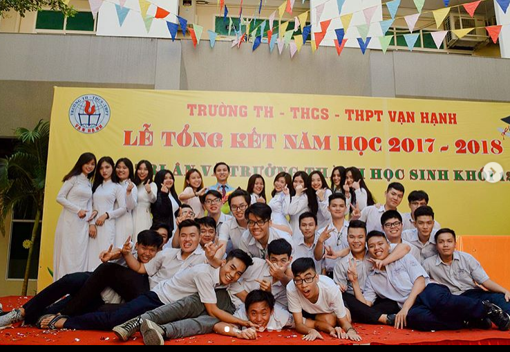 Tiểu Vy và các bạn trong lớp tại trường THPT Vạn Hạnh.