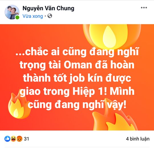 Bên cạnh đó, cư dân mạng bày tỏ mong muốn tìm được trang cá nhân của trọng tài Ahmed Al-Ka. “Cho xin Facebook ông trọng tài nào!”, “Mong các bác cho em một địa chỉ link facebook của trọng tài”.