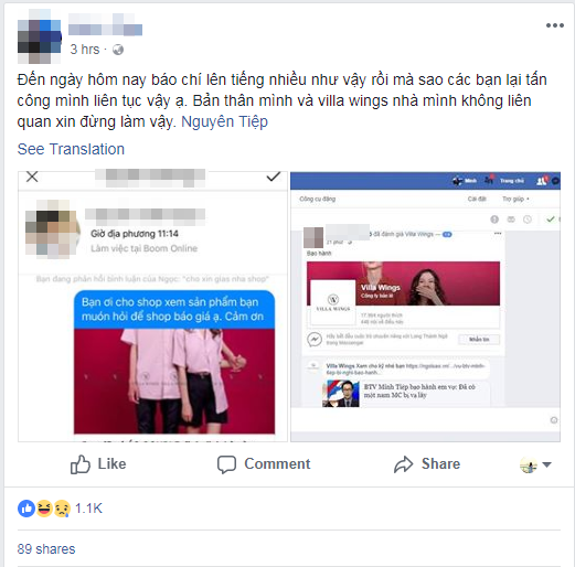 Tình huống bi hài này đã khiến nam BTV phải viết lên trang cá nhân đính chính. “Đến ngày hôm nay báo chí lên tiếng nhiều như vậy rồi mà sao các bạn lại tấn công mình liên tục vậy ạ. Bản thân mình không liên quan xin đừng làm vậy”.