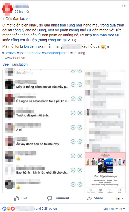 Trên trang cá nhân, bạn bè BTV Minh tiệp của đài VTC cũng liên tục lên tiếng đính chính. Tuy nhiên, có vẻ ngần ấy vẫn không đủ giúp những “anh hùng bàn phím” “tỉnh ngộ”. Theo chia sẻ của BTV Tiệp (VTC), người này nhận được không ít inbox chỉ trích thậm tệ từ những người không quen biết. Thậm chí, ngay dưới bài chia sẻ phóng sự, chương trình anh tham gia sản xuất cũng bị cư dân mạng hùng hổ nhảy vào ném đá.