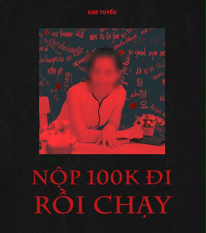 Cô giáo này được gắn với poster MV mới nhất của Sơn Tùng M-TP. Thế nhưng thay bằng “Chạy ngay đi”, dân mạng đã chế thành “Nộp 100k đi rồi chạy”.