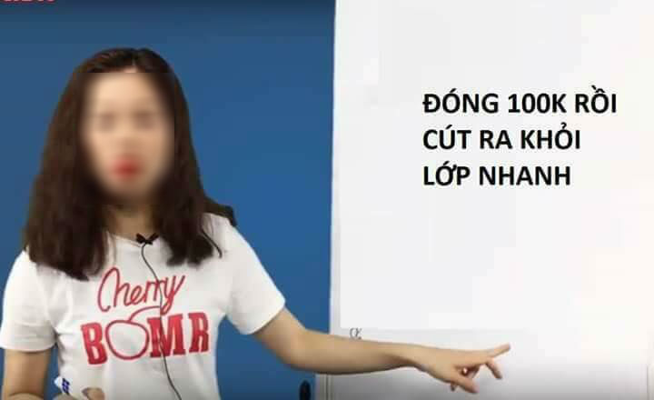 Bài giảng của cô giáo K.T được dân mạng chụp màn hình và thêm dòng chữ yêu cầu đóng 100k.
