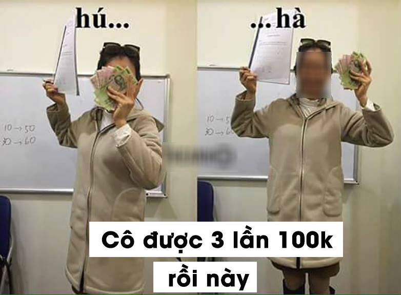 Sau khi clip cãi nhau tay đôi với nam sinh bằng lời lẽ khó nghe, chửi học viên là “mặt lợn” chỉ vì 100k tiền phạt được đăng tải trên mạng xã hội, cô giáo dạy tiếng Anh bỗng trở thành tâm điểm chú ý. Chế ảnh cô giáo này bỗng trở thành một trào lưu. Tràn ngập new feed là những hình ảnh chế của cô giáo trên với câu nói “để đời”: “Đóng 100k rồi biến ra khỏi lớp”.