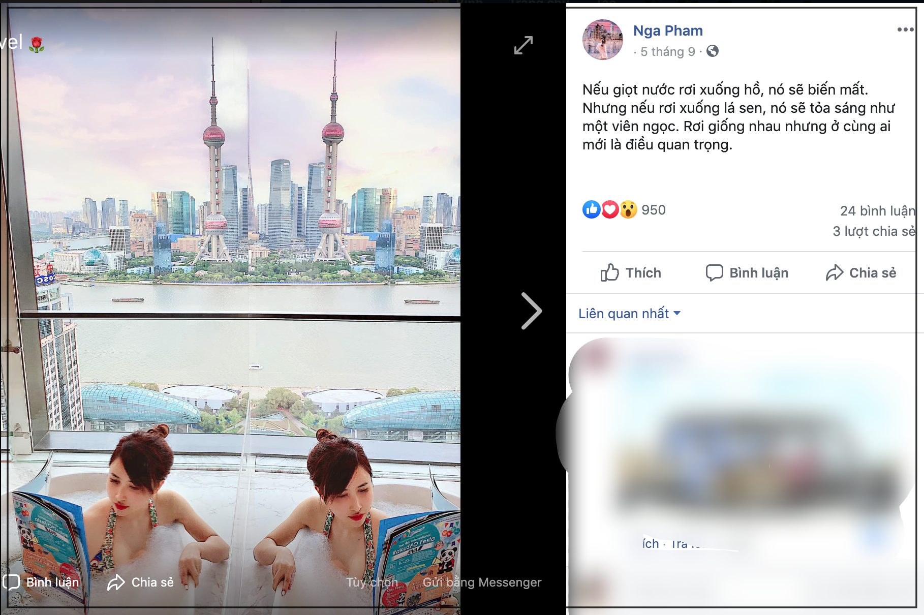 ”Nếu giọt nước rơi xuống hồ, nó sẽ biến mất. Nhưng nếu rơi xuống lá sen, nó sẽ tỏa sáng như một viên ngọc. Rơi giống nhau nhưng ở cùng ai mới là điều quan trọng”