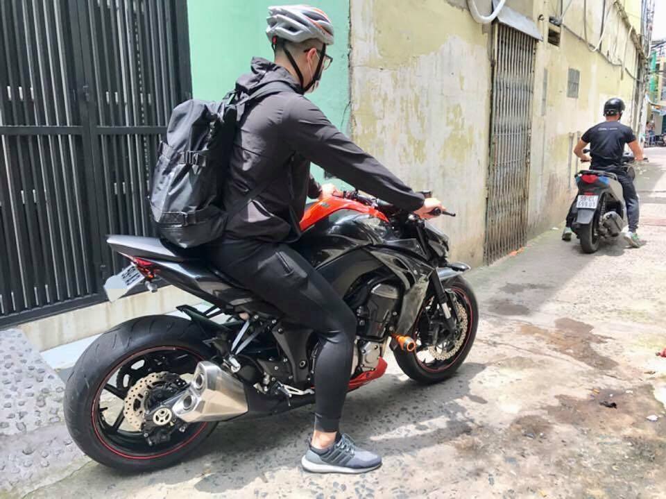 Một anh chàng ngồi Z1000 như xe đạp điện. Ảnh Bin Đỗ.