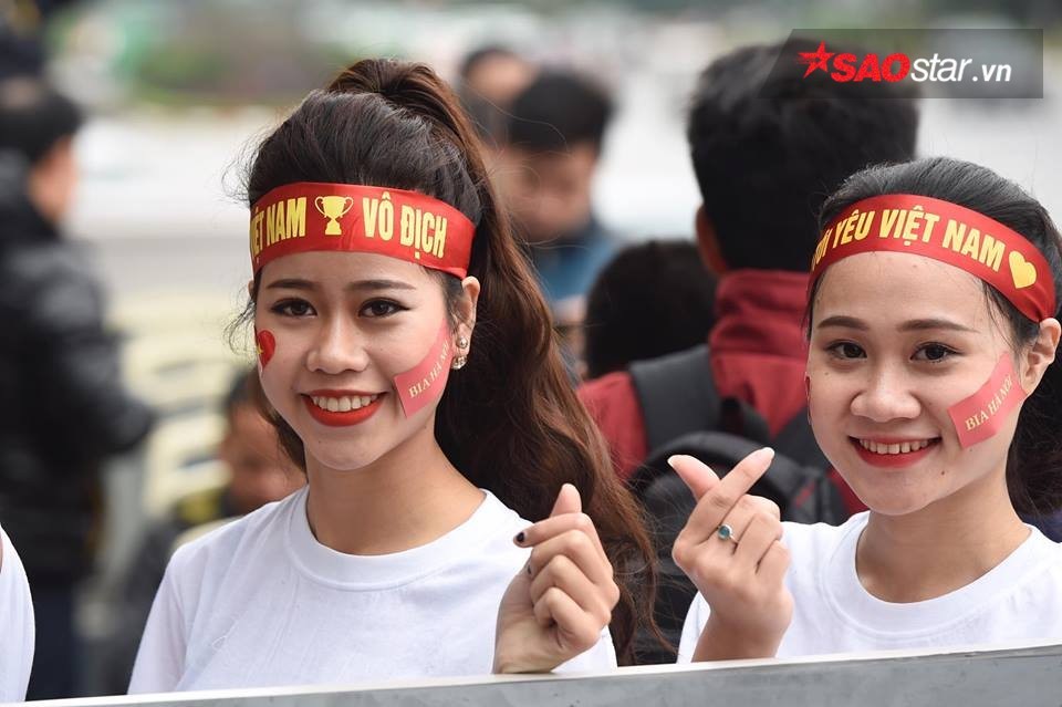Để thể hiện tình yêu bóng đá, nhiều chị em đã không quản ngại mưa gió, rét mướt, mặc áo phông, đầu cuốn băng rôn ủng hộ đội bóng.