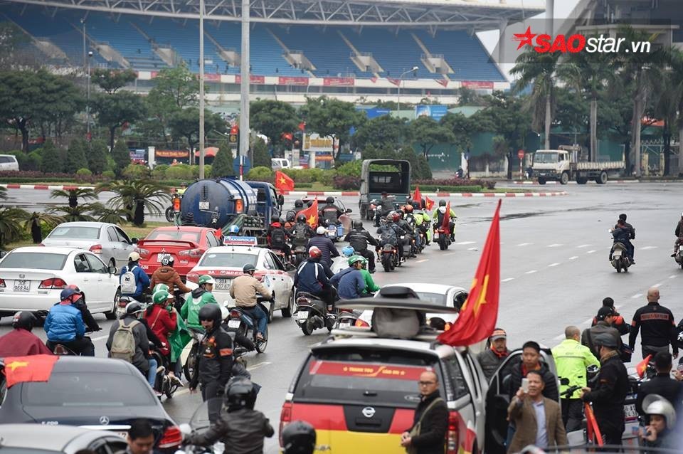 Theo dự kiến, phải đến chiều 28/1, các cầu thủ U23 mới về đến sân bay Nội Bài và bắt đầu diễu hành trên xe buýt 2 tầng thế nhưng ngay từ lúc này, hàng trăm người hâm mộ đã đổ xuống đường để đón chào những “người hùng”.