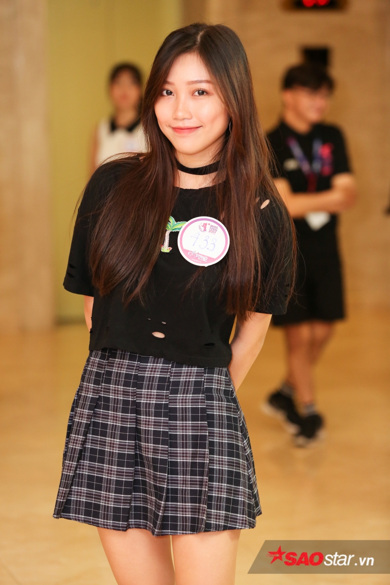 Có lẽ đây là thí sinh chơi trội nhất trong buổi sáng casting khi chọn chiếc váy dạ hội vô cùng lộng lẫy.