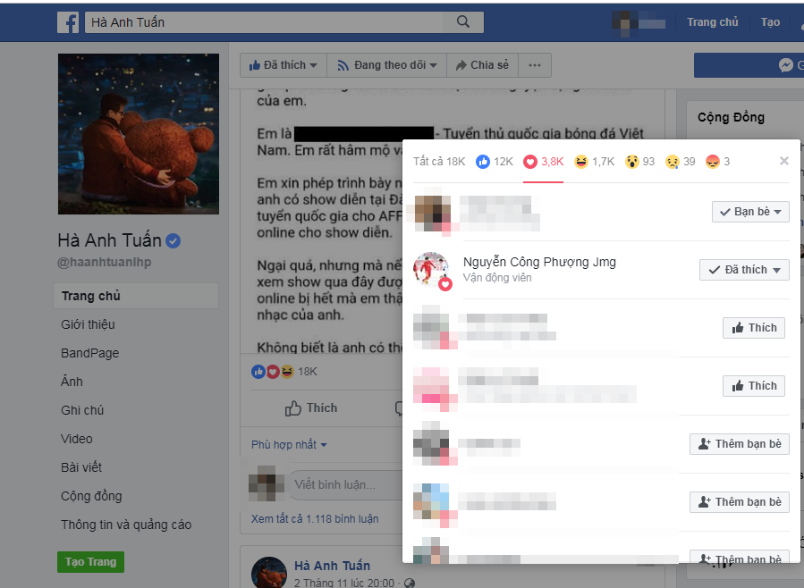 Không biết Công Phượng “like dạo” hay chính anh là chủ nhân của email trên? Nhưng ngay khi sử dụng fanpage chính chủ thả tim post trên của ca sĩ Hà Anh Tuấn, cầu thủ gốc Nghệ An đã nằm gọn trong danh sách những cái tên viết email xin book vé liveshow.
