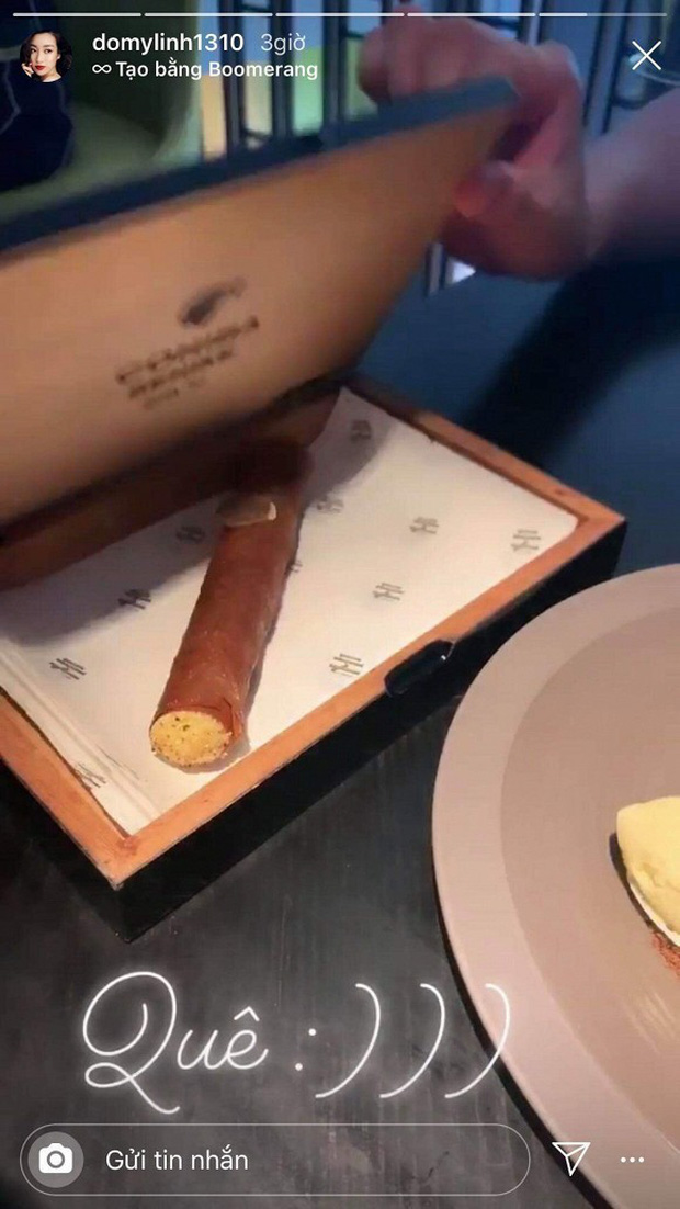 Ngay sau đó, Đỗ Mỹ Linh cũng đăng tải hình ảnh điếu xì gà cực sang trọng.