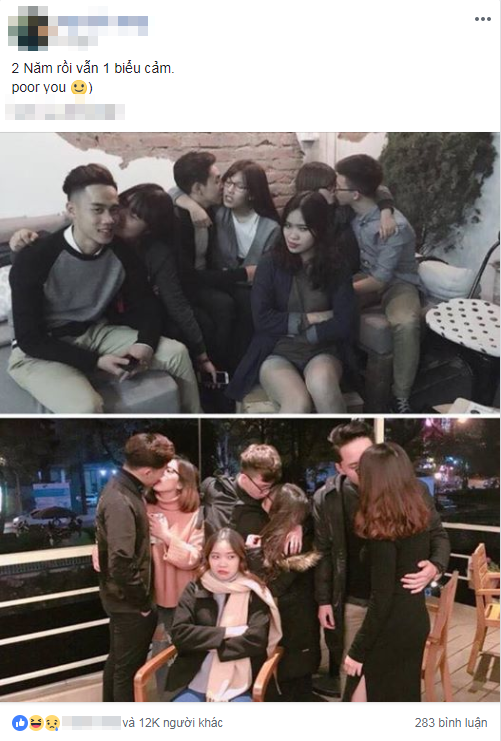 Chả là một cô nàng chia sẻ hình ảnh 2 năm về trước và hiện tại với hội bạn thân của mình. Trong hình ai cũng có đôi có cặp, thậm chí còn có hành động tình tứ với nhau còn cô nàng kia hậm hức ngồi một mình. Giả thiết dân tình đặt ra ở đây chính là ai chụp những tấm hình này?