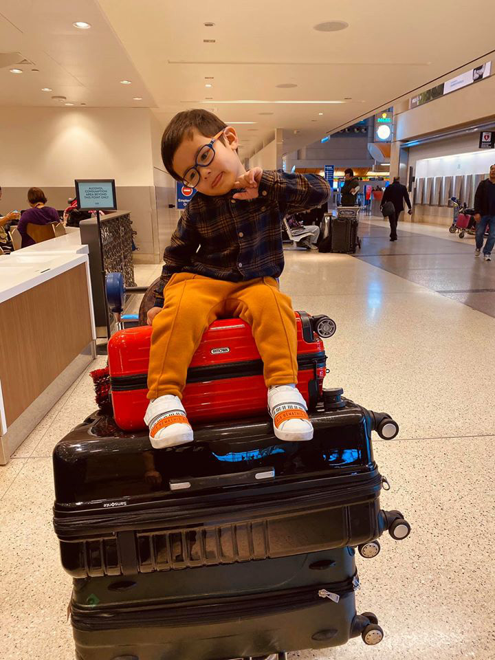 Đúng như thông tin trước đó, mới đây, gia đình nhà Đan Đường đã chính thức “xách va li” về nước. Xuất hiện ở sân bay, cậu bé gây ấn tượng với vẻ ngoài dễ thương, sành điệu khi được mẹ diện cho chiếc áo sơ mi và quần bảnh bao.
