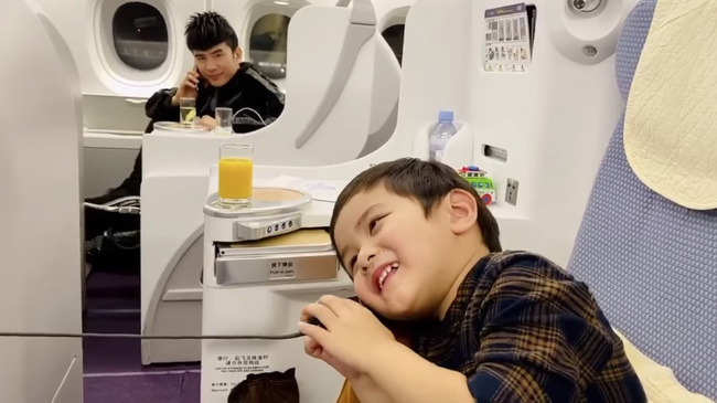 Lúc ở trên máy bay, mẹ Thủy Tiên đã không quên quay một clip ghi lại những khoảnh khắc hiếu động của con trai. Ngoài nhân vật chính cực kỳ “nghịch ngợm” bị mẹ nhắc nhở thì Đan Trường cũng nhanh chóng được cư dân mạng chú ý. Dù chỉ xuất hiện khoảng mấy giây thôi nhưng người hâm mộ vẫn trầm trồ với nhan sắc “hết sức” điển trai và trẻ trung của anh Bo.