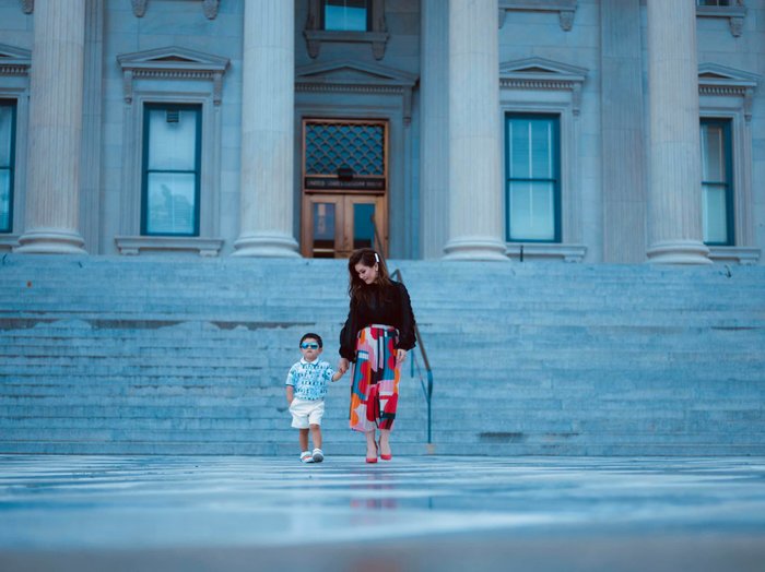 Mẹ Thủy Tiên tập cho con trai đi catwalk từ sớm trước khi cậu bé về Việt Nam.