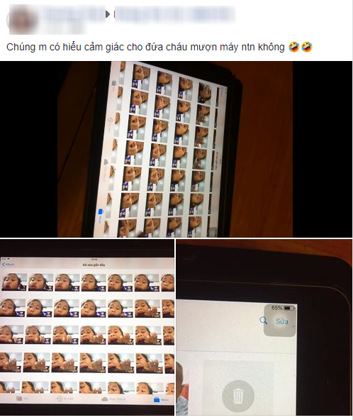 Ngay sau khi chia sẻ, bài viết nhanh chóng nhận được sự quan tâm của đông đảo mọi người. Hóa ra đây là “nỗi đau” chung của những gia đình có con cháu nhỏ tuổi. Ở phần bình luận liên tục xuất hiện hàng loạt bức ảnh chỉ có một biểu cảm duy nhất.
