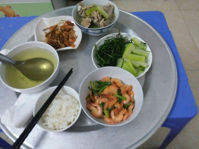 Chẳng là mẹ trẻ có nickname L.M đăng tải lên group đông thành viên cùng hình ảnh mâm cơm có tôm rim, canh bí đao hầm xương, rau muống luộc với câu hỏi: “Cơm cữ mẹ chồng nấu cho em đây các mom ạ. Liệu em sinh mổ có ăn được không ạ?”.