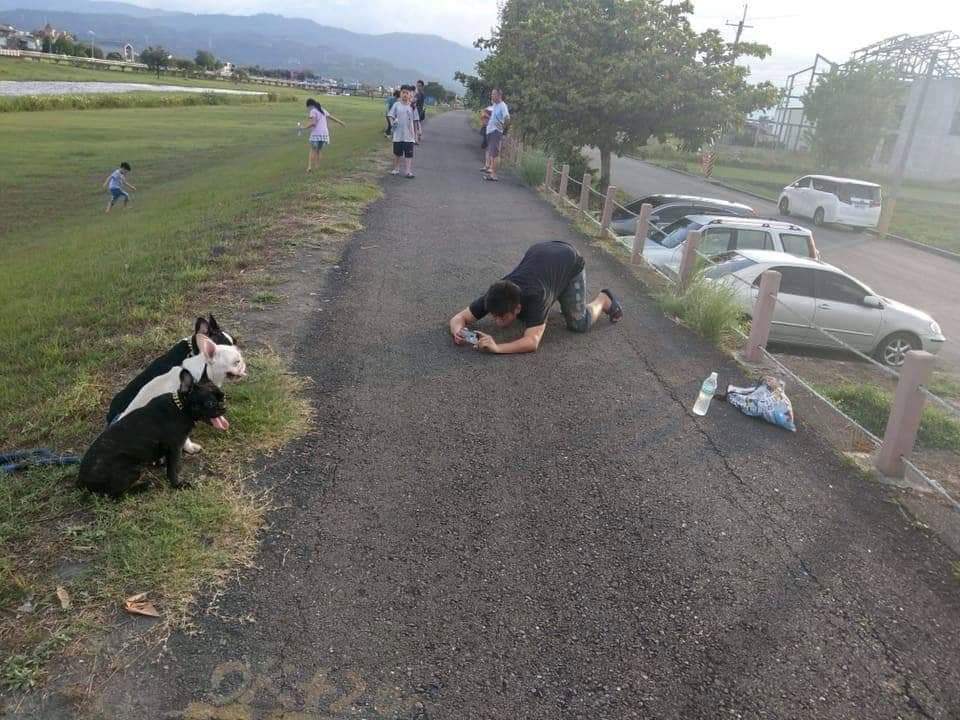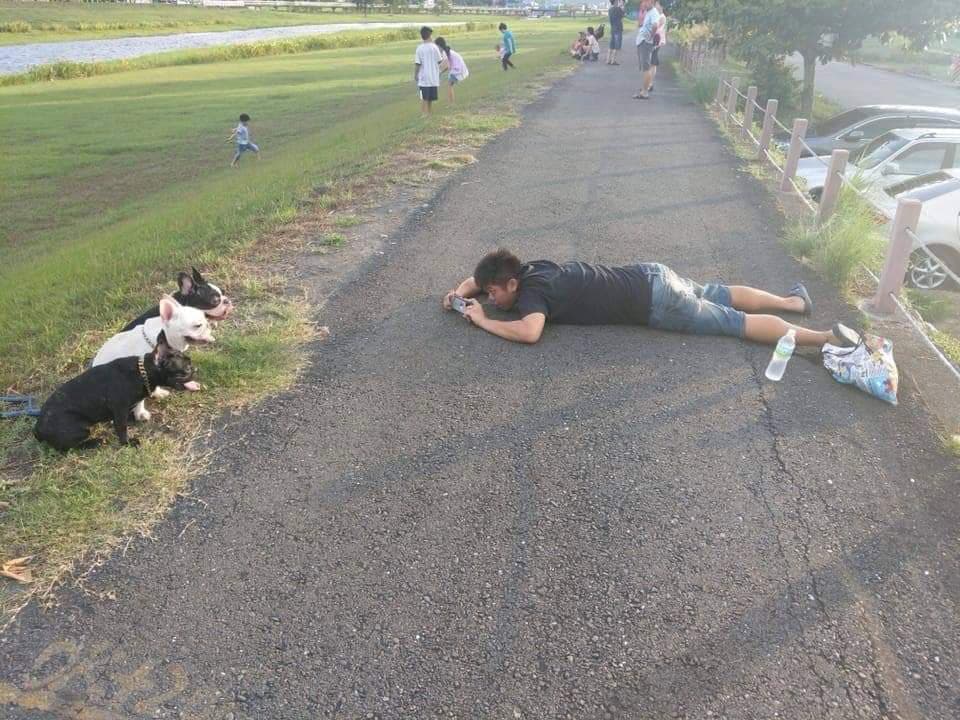 Mới đây, trên mạng xã hội xuất hiện hình ảnh 1 nam thanh niên nhiệt tình “lăn lê bò trườn”, chấp nhận nằm ngay dưới đường bê tông để chụp hình cho những chú chó cưng của mình. Có lúc anh chàng còn chổng cả mông lên trời để chụp hình cho ba đại boss, khiến cộng đồng mạng không khỏi bật cười.