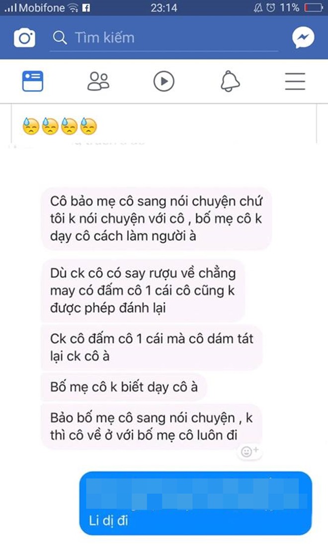 Tuy nhiên, rượu chè lại còn vũ phu chưa đủ, người chồng trong câu chuyện dưới đây còn lớn tiếng mắng cả bố mẹ vợ không biết dạy con. Mới đây, một cô vợ trẻ đã đăng tải đoạn tin nhắn giữa cô và chồng.