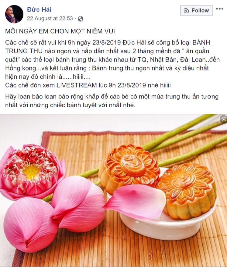 Trung thu dần chạm ngõ, Kinh Đô mến chúc chef Hải một Trung thu an khang. Chúc chef Hải luôn giữ được trọn tâm huyết trong từng món ăn.”