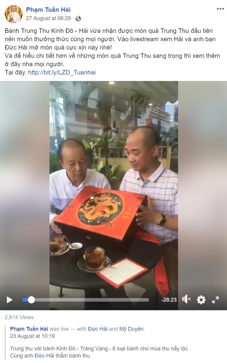 Trong live-stream cảm nhận vị bánh, chef Tuấn Hải và người bạn Đức Hải của anh đã không ngần ngại cắt ngay một chiếc bánh để thưởng thức cho “cư dân mạng” thèm thuồng. Chef Hải không tiếc lời khen vỏ bánh Trung thu truyền thống “như tan trong miệng”, trong khi mùi hương của phần nhân cứ vấn vít nơi đầu lưỡi. Những nguyên liệu thượng hạng từ bào ngư, cua bát bửu, tôm bách hoa, hạt sen tứ quý… được tuyển chọn kỹ càng, chế biến tinh tế để mùi và vị, sắc và hương hoà quyện vào nhau một cách bài bản nhất mà vẫn không bị át mất vị đặc trưng của mỗi loại.