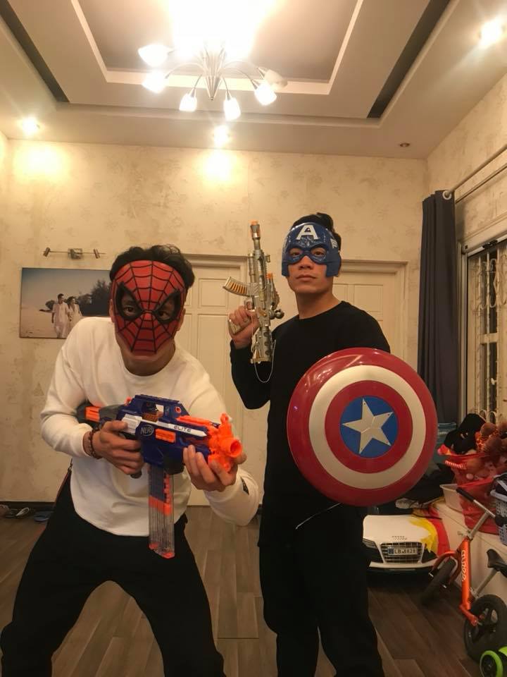 Hình ảnh đáng yêu này được Bùi Tiến Dũng chia sẻ trên trang cá nhân kèm caption hài hước: “Vừa đi casting cho Infinity War xong”.