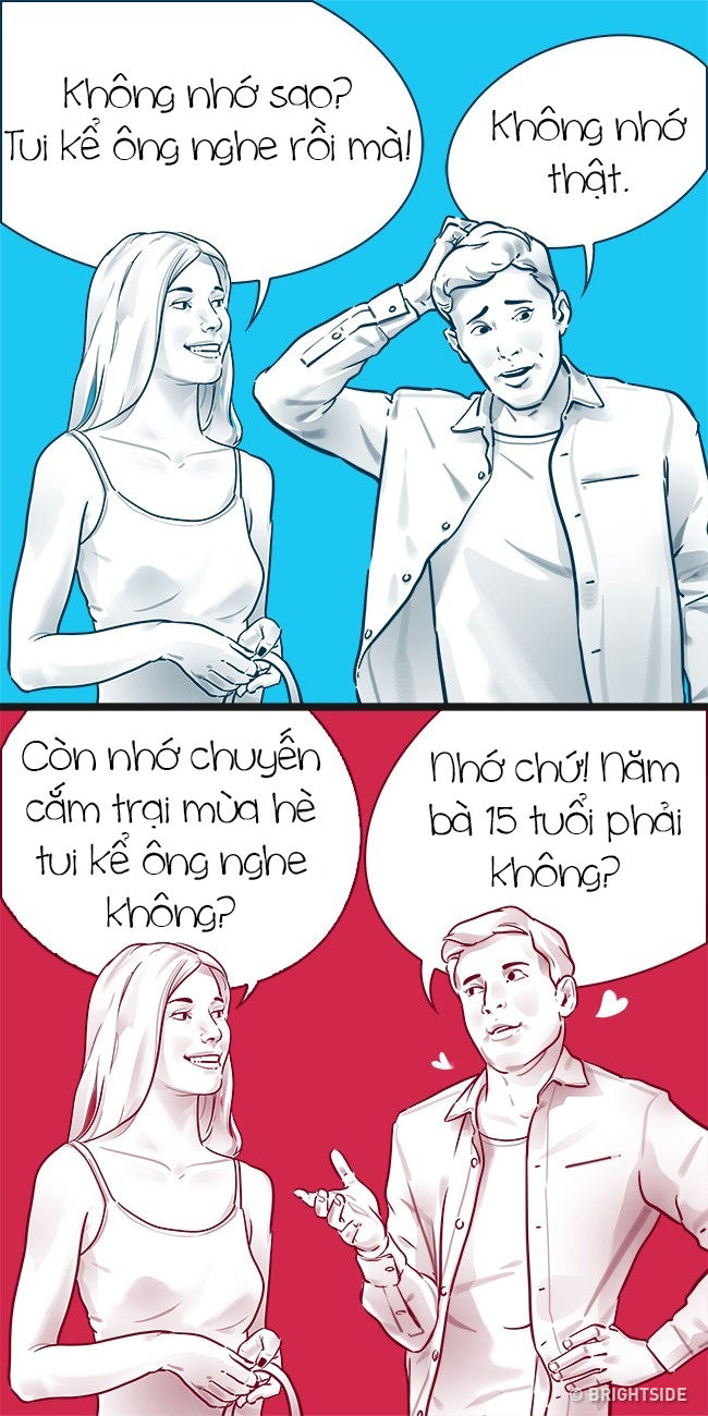 Bạn bè quên béng mất chuyện bạn kể họ nghe là bình thường nhưng chàng trai yêu bạn sẽ nhớ đến từng chi tiết điều bạn nói với anh ta. Sức mạnh của tình yêu tác động mạnh đến trí nhớ vậy đấy.