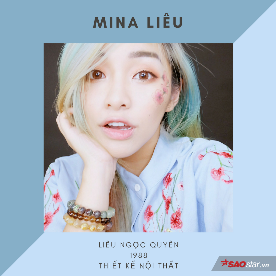 Mina Liêu sinh 1988, từng là sinh viên học ngành Thiết kế nội thất, trường Đại học Tôn Đức Thắng. Trước đây, cô nàng được chọn làm model cho một số báo, tạp chí với tên Mina Xinh hoặc Mina Liêu. Cạnh đó, nhờ tài năng của mình, Mina đã có thiết kế được lựa chọn cho chuỗi cà phê danh tiếng Gloria Jeans ngay khi còn rất trẻ.