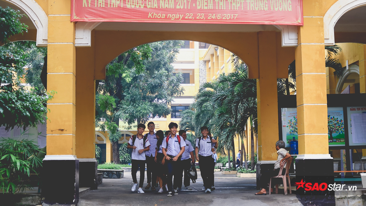 Các bạn học sinh ra về với tâm trạng phấn khởi sau buổi sáng đầu tiên của kỳ thi.