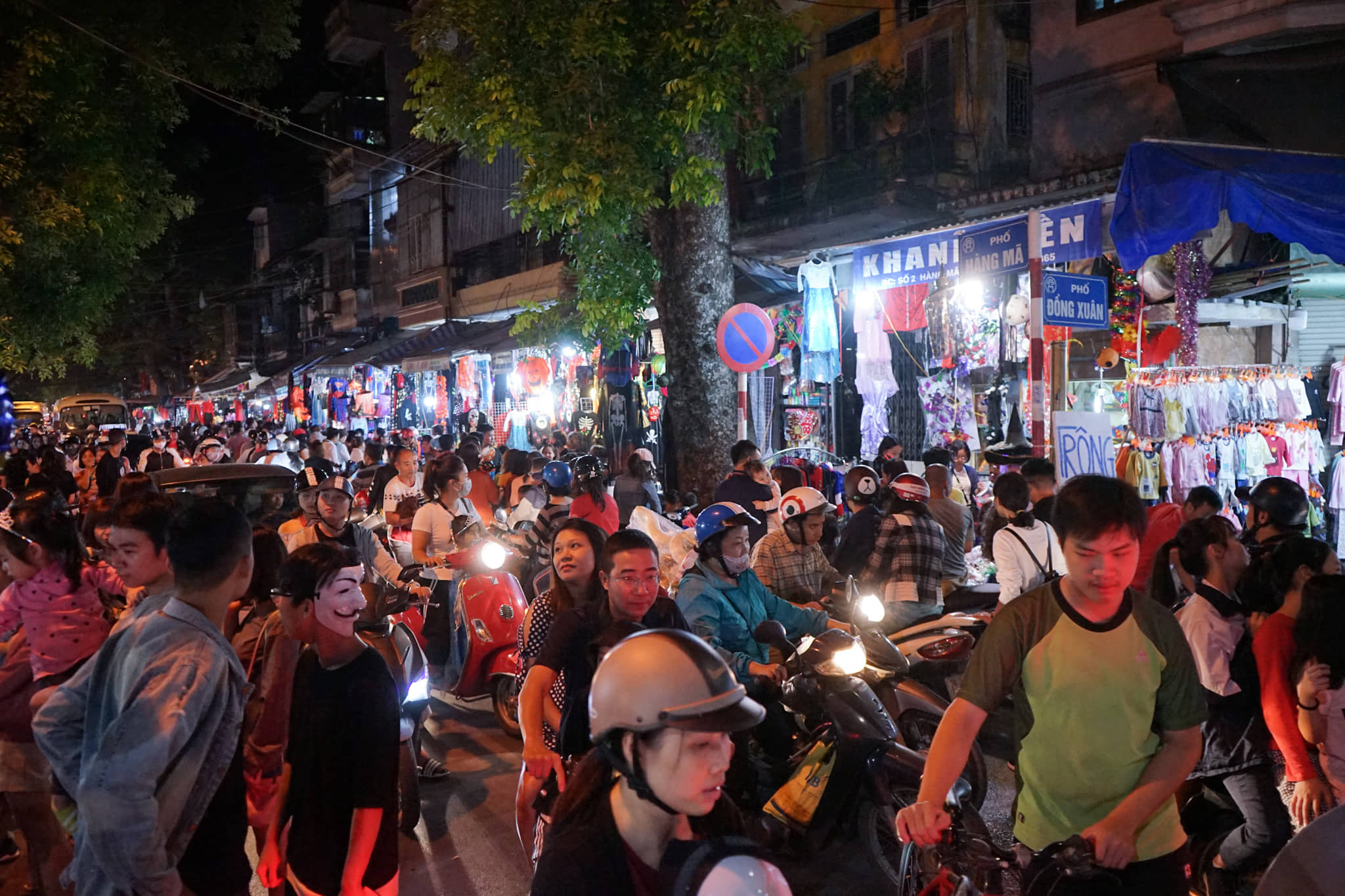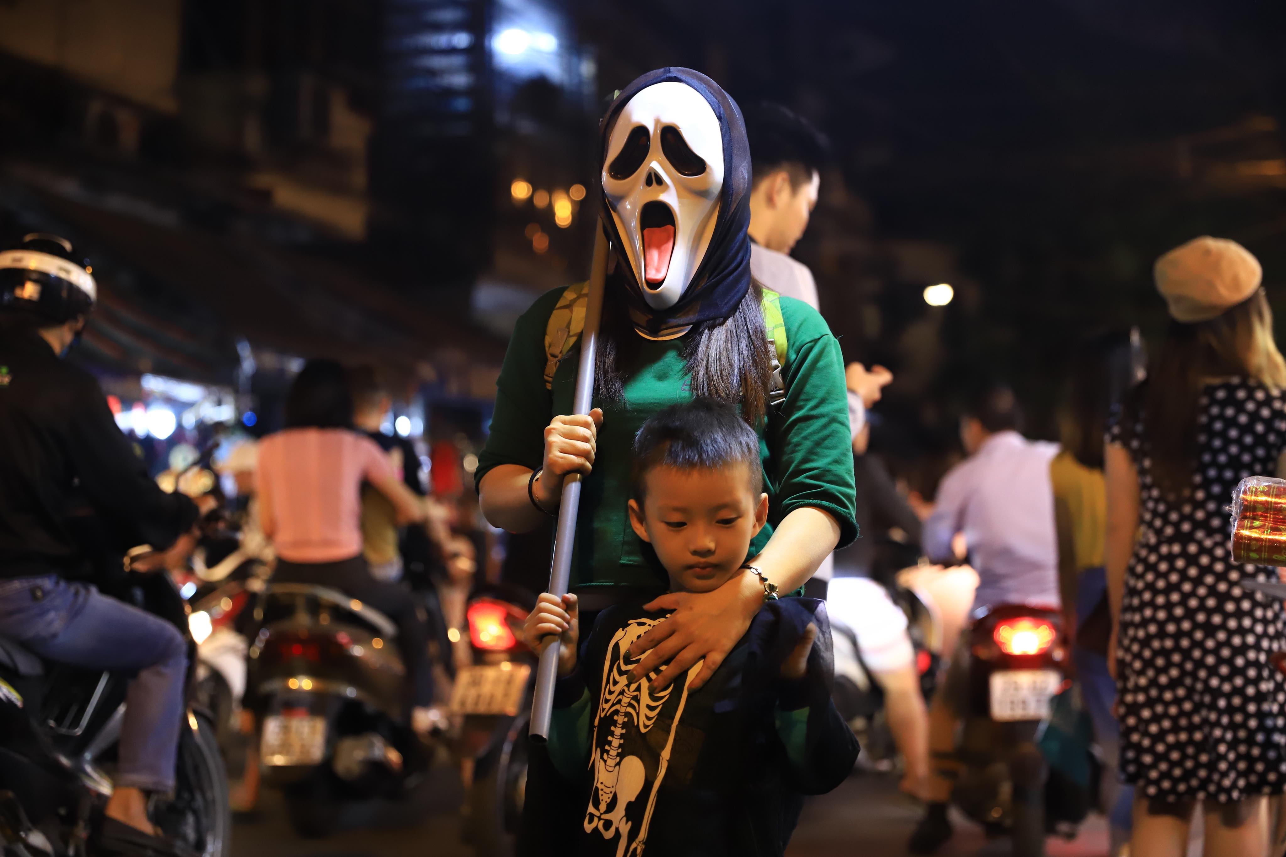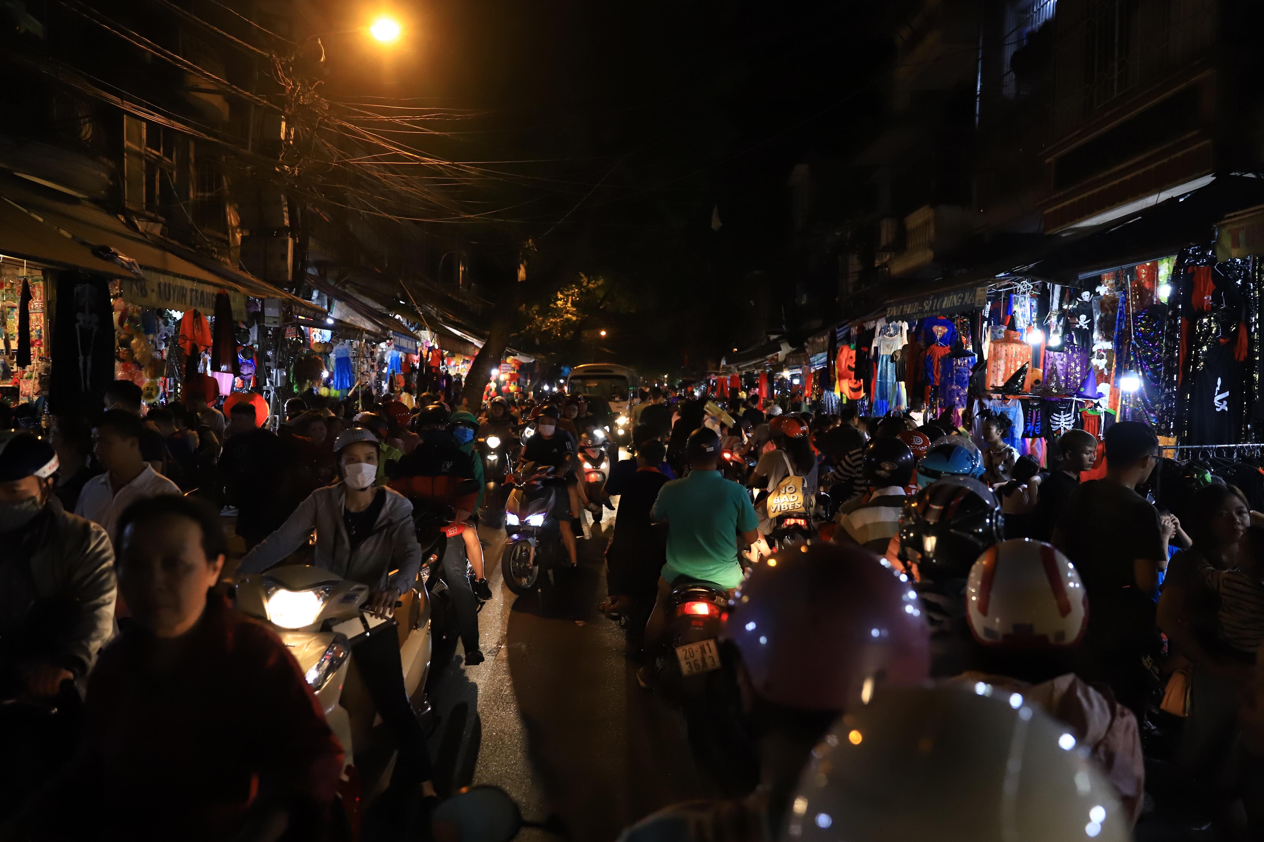 Không khí tấp nập và cảnh chen chúc ở các con phố khi dòng như đổ xuống đường “quẩy” Halloween.