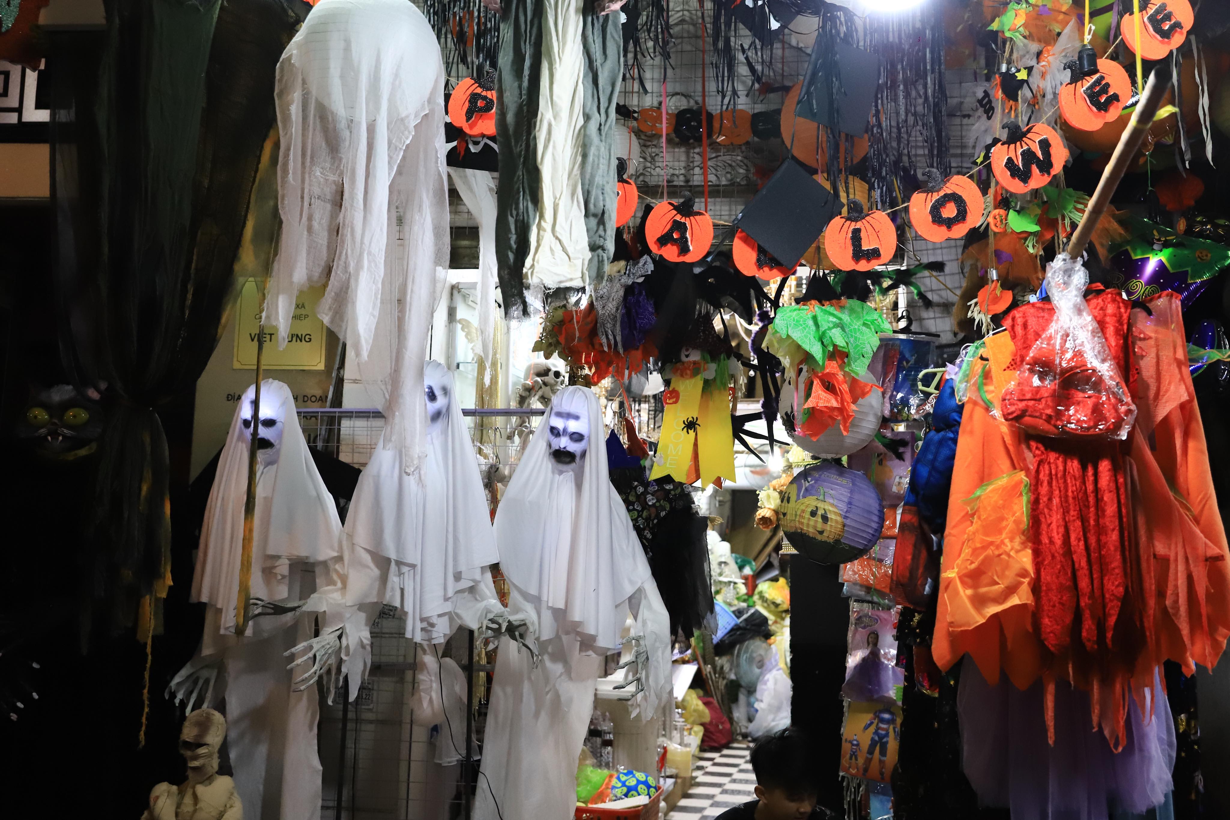 Nhiều mặt hàng phục vụ Halloween vẫn được bày bán vào đêm cuối cùng.