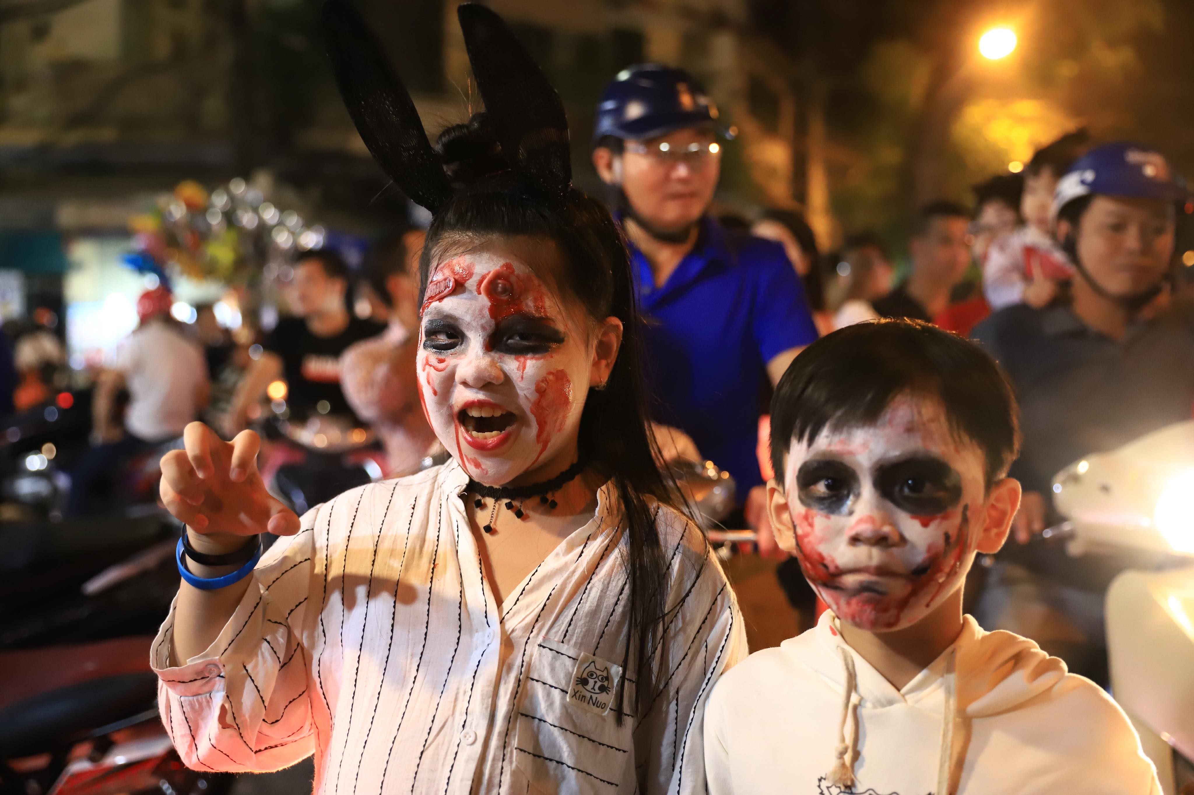 Không chỉ người lớn mà các em nhỏ cũng tham gia màn hóa trang cực “ngầu” thành những nhân vật kinh dị.